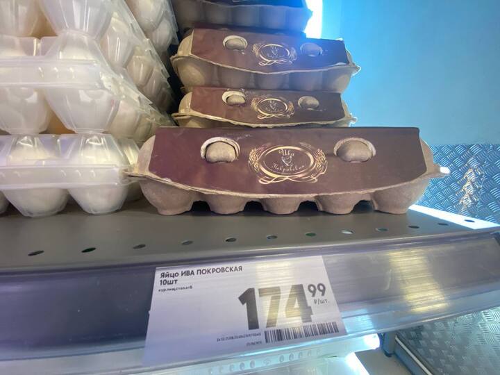 Яйца, это отдельная история. На полках представлен как местный, так и западный производитель. Яйца от местных курочек обойдутся в 130 – 160 рублей за десяток. Западные 140 – 190. Цена зависит от категории продукта, а не от уровня магазина.