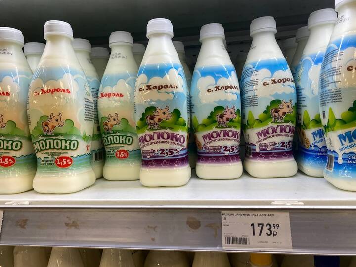 Молоко, в зависимости от производителя, процента жирности и уровня пастеризации в сетевом супермаркете будет стоить 130 – 170 рублей за литр.