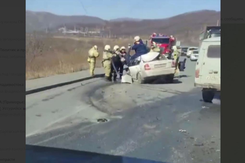 В Приморском крае, в районе поселка Врангель, произошло страшное ДТП, в результате которого погиб человек. По сообщениям очевидцев, легковой автомобиль, выехавший на встречную полосу, столкнулся с груженым самосвалом. Авария произошла в районе Первостроителей, недалеко от Находки.