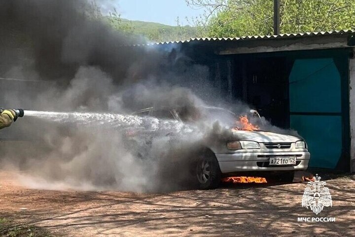 Первое возгорание произошло днем на улице Промышленной в Партизанске. По прибытию пожарных расчетов машина уже полностью полыхала.