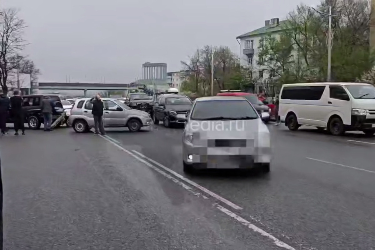 Несколько автомобилей столкнулись на проспекте 100-летия Владивостока в районе дома № 45. По предварительным данным, в аварии никто не пострадал, однако машины получили серьёзные повреждения. Об этом сообщили очевидцы происшествия.