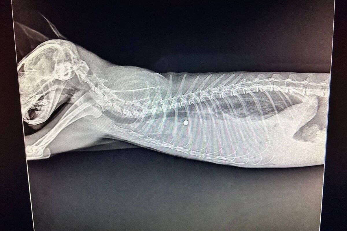 Животное доставили в ветеринарную клинику в Артеме, где коту диагностировали повреждение легкого. На рентгеновских снимках зафиксирован металлический предмет, предположительно пуля от травматического оружия.