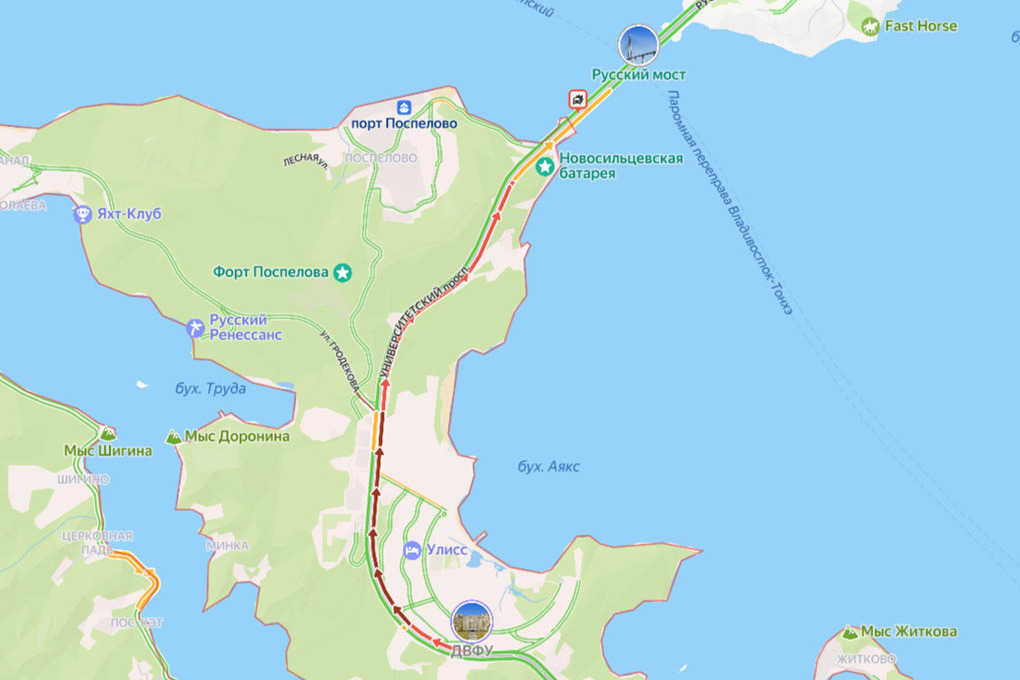 По информации очевидцев, авария произошла не более часа назад – в разгар вечернего часа пик – между остановкой «Кампус ДВФУ» и центром города. В результате столкновения автомобилей движение в этом направлении оказалось парализовано.