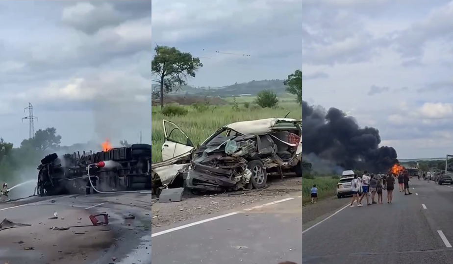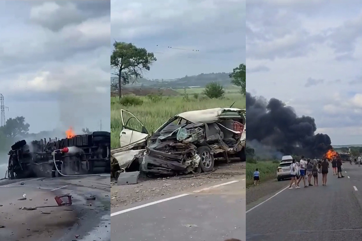 На месте работают сотрудники ГИБДД, МЧС и медики. Возгорание было локализовано, однако расчистка дороги займет несколько часов.