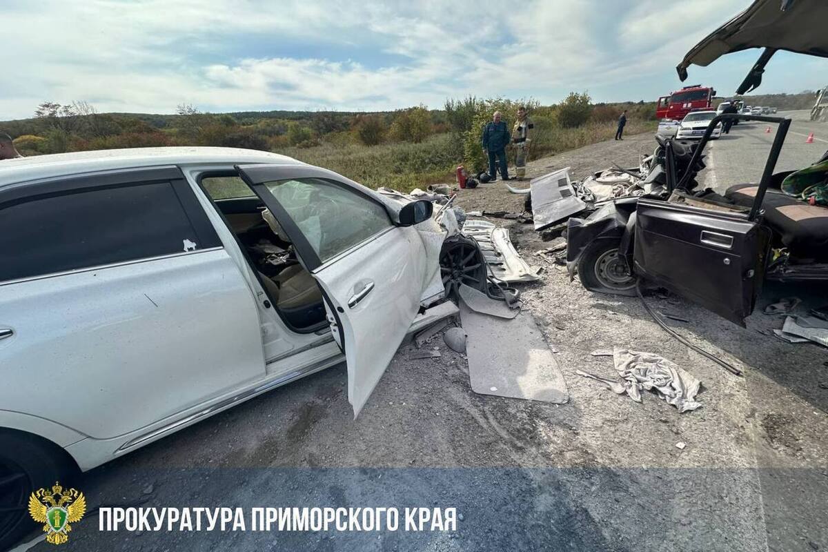 На 528-м километре трассы Хабаровск — Владивосток произошло смертельное ДТП, в результате которого погибли два человека. По предварительной информации, водитель автомобиля Toyota Mark X выехал на полосу встречного движения, где столкнулся с ВАЗ-21043, сообщили в Прокуратуре Приморья.