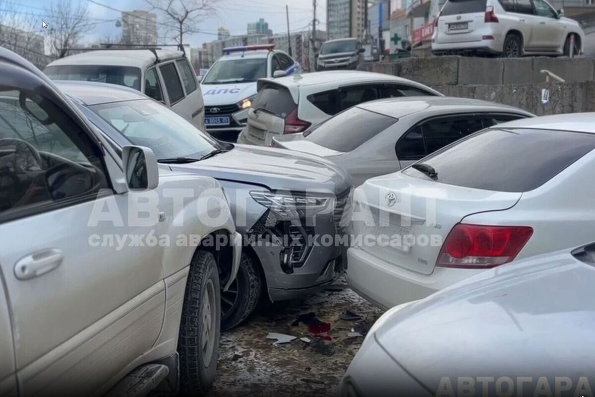 Цепная реакция: пять машин повреждены в аварии на спуске у Народного проспекта во Владивостоке