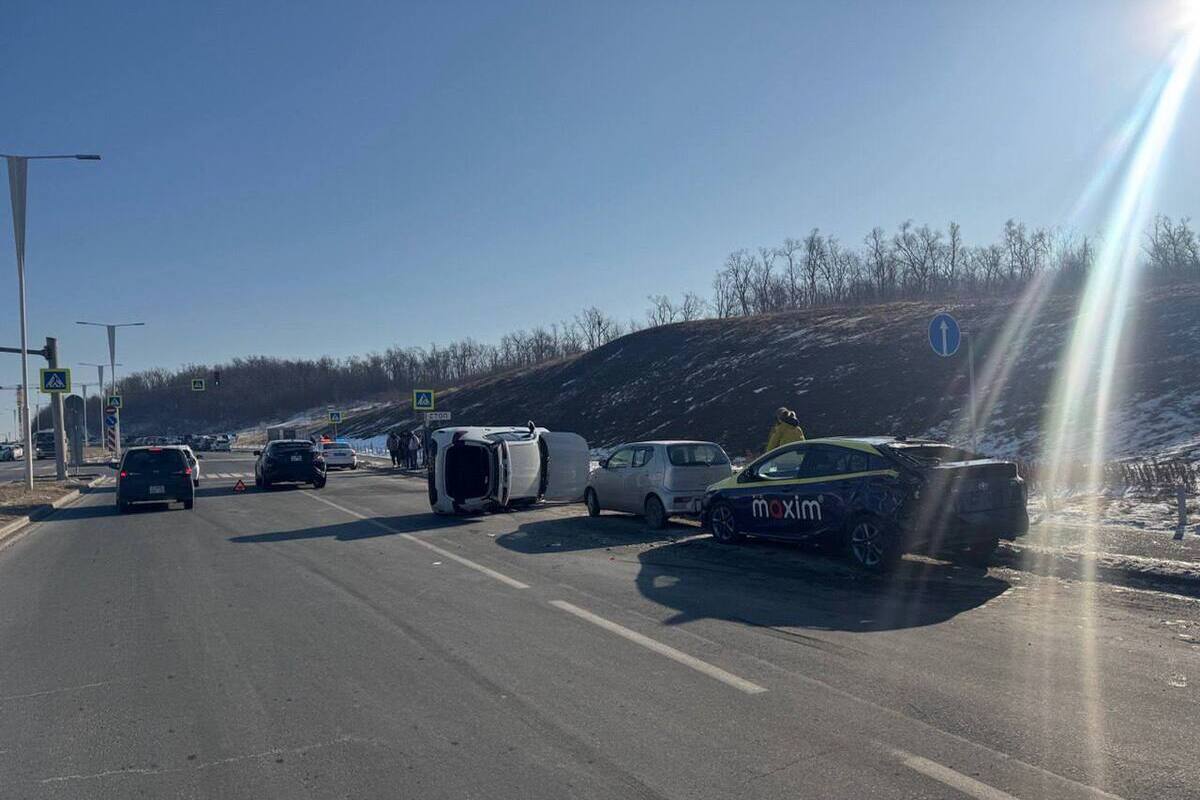 На улице Аякса во Фрунзенском районе Владивостока произошло ДТП, в результате которого один из автомобилей перевернулся, сообщает Официальный канал УМВД России по Приморскому краю.