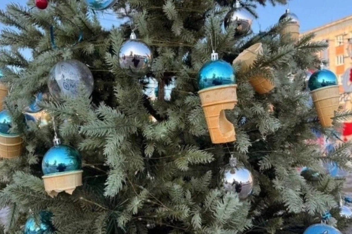 В качестве декора использовались пластиковые шарики, стилизованные под мороженое в вафельных стаканчиках. Сейчас почти на каждом таком украшении видны явные следы зубов. Кто стал «голодным вандалом» -остаётся загадкой.