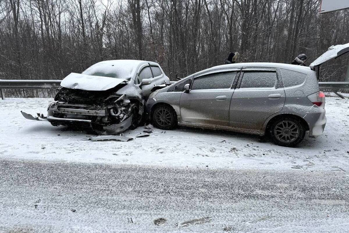 Столкновения произошли этим утром, в 11:30, на участке Надеждинского района. Предполагается, что из-за неблагоприятный погодных условий и образовавшихся снежных накатов и наледей, автомобили друг за другом занесло. Кто-то потерял управление, а кто-то не успел среагировать на аварию впереди.