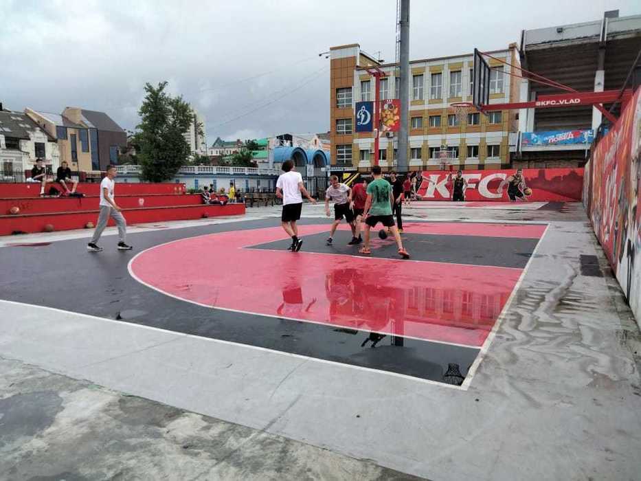 КФС арена, тут расположилась целая заполненная необычным стрит-артом! Безумно приятное место, чтобы посидеть с друзьями или поиграть в баскетбол. Юным спортсменам погода не чужда, идут играть и в дождь и в снег. Даже в с дождем это место воодушевляет своей атмосферой. Играет олд-скул рэп, всё общаются и играют.