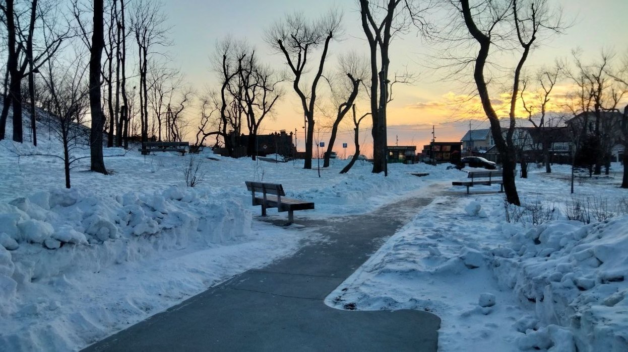 В новом парке Нагорный открывается самый красивый вид на море. Если вы приедете во Владивосток, то обязательно посетите любимое место отдыха для многих горожан. В 2020 году на месте парка была свалка и стоянка. Сейчас же здесь можно прогуляться по дорожкам, посидеть на лавочках и перекусить фаст-фудом. Еще в парке есть пруд с камнями и необычная детская площадка, летом собирается много детворы и мам с колясками. Зимой можно увидеть туристов, впрочем, их во Владивостоке полно в любой сезон. Как выглядит парк Нагорный зимой, увидите в нашем фоторепортаже.