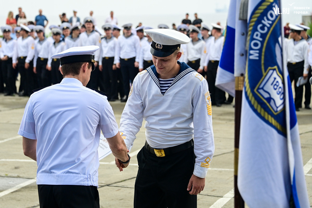 В четверг во Владивостоке 242 курсанта получили свои заслуженные дипломы и попрощались с морским государственным университетом имени адмирала Невельского. Девять парней окончили МГУ с отличием. Это был последний выпуск, где приморцы проучились пять лет. Следующий будет уже 5,5 года. Как вручали дипломы будущим судоводителям, судомеханикам, электромеханикам смотрите в нашей галерее.