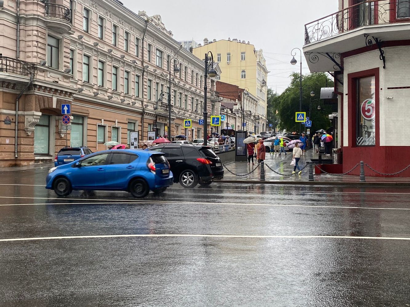Празднование Дня военно-морского флота сильно подпортила погода. С самого утра моросил дождь, который позже перешел в ливень. Однако, зрители собрались посмотреть парад кораблей в бухте Золотой рог и представление, данное на водной станции Тихоокеанского флота.