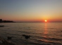 На песке – первые отдыхающие: кто-то пришел просто прогуляться вдоль воды, кто-то – погреться на солнце, укутавшись в плед, а дети радостно плескаются в еще прохладном, но уже манящем заливе. Морская гладь переливается в оттенках синего и бирюзового, отражая небо и мягкие контуры облаков. Пахнет морем, свежестью и надеждой на теплое лето.