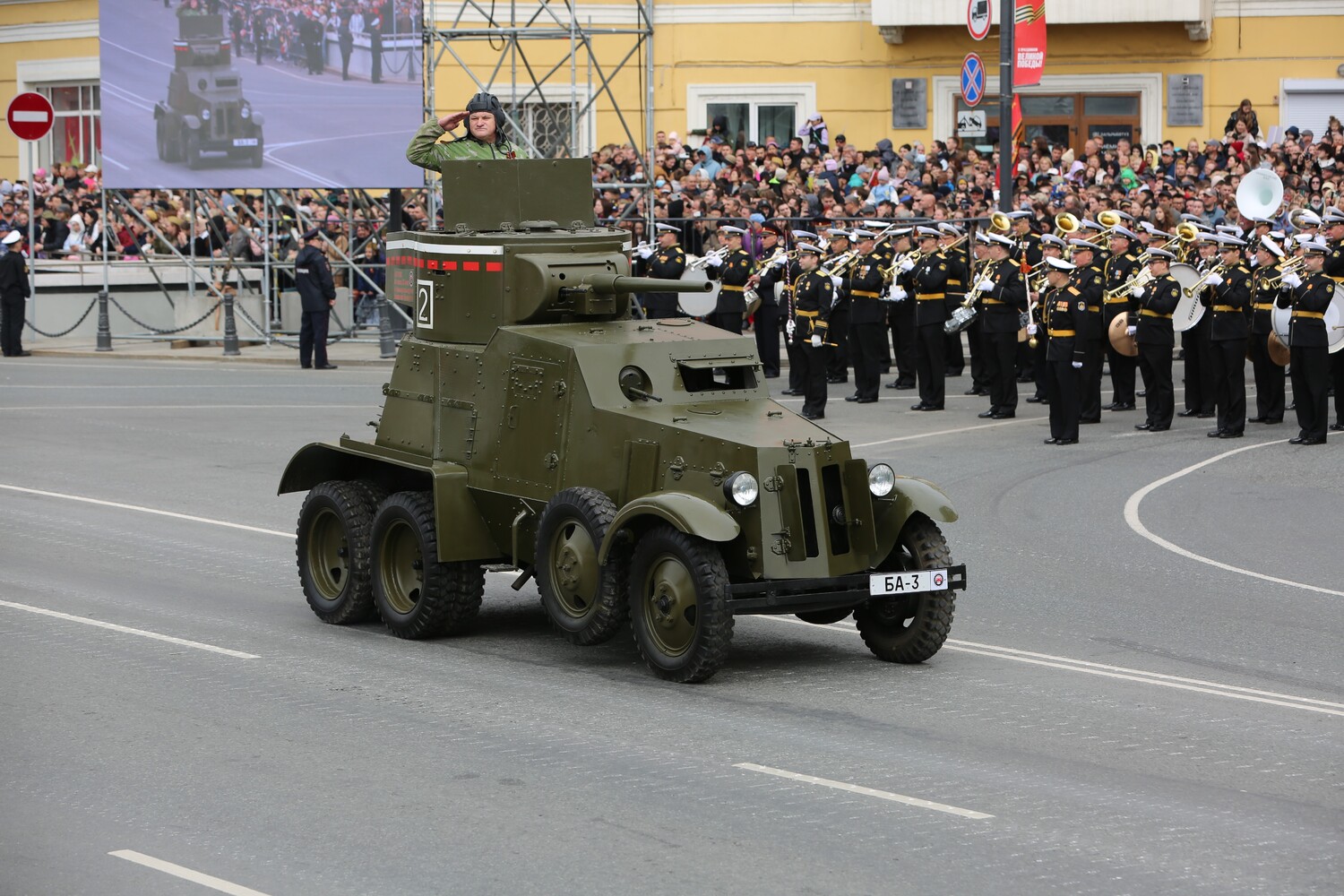 Вслед за колоннами на центральную улицу Владивостока вышла боевая техника, времён Великой Отечественной. Первыми прошли легендарные Т-34, показавшие в годы войны абсолютное превосходство в манёвренности и проходимости.