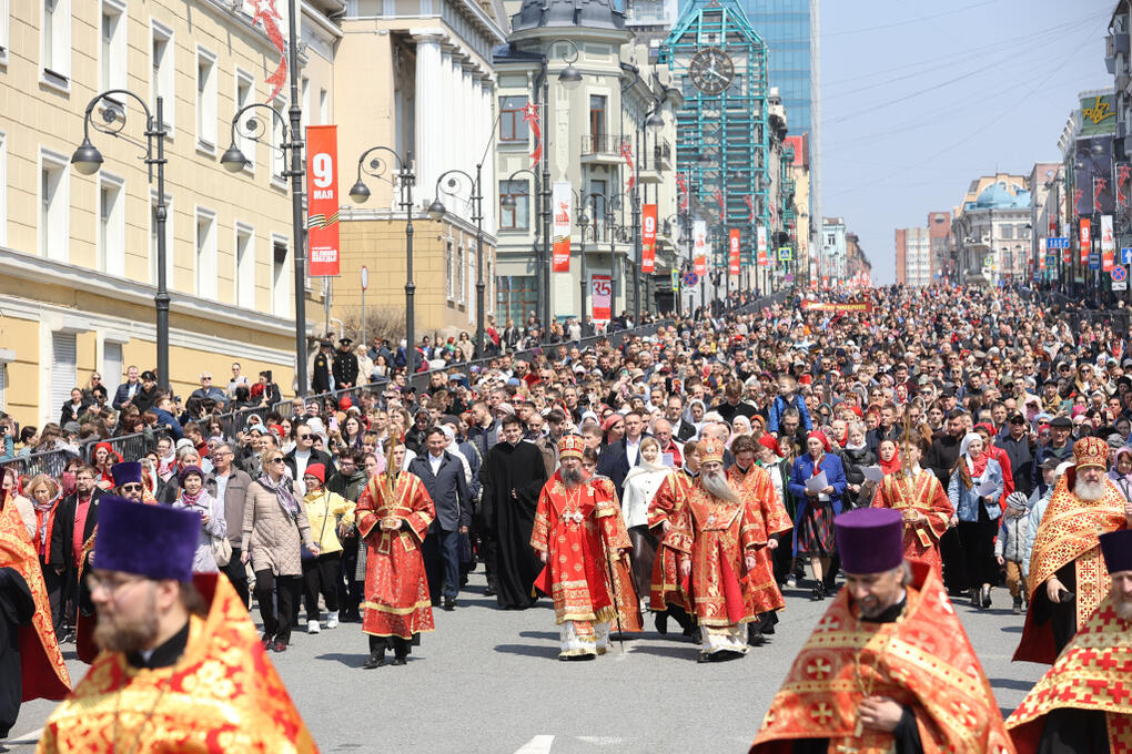 Напомним, празднование Пасхи началось с ночной службы в Покровском храме, продолжилось полуденным крестным ходом до центральной площади Владивостока, куда православные пришли на богослужение в Преображенский собор.