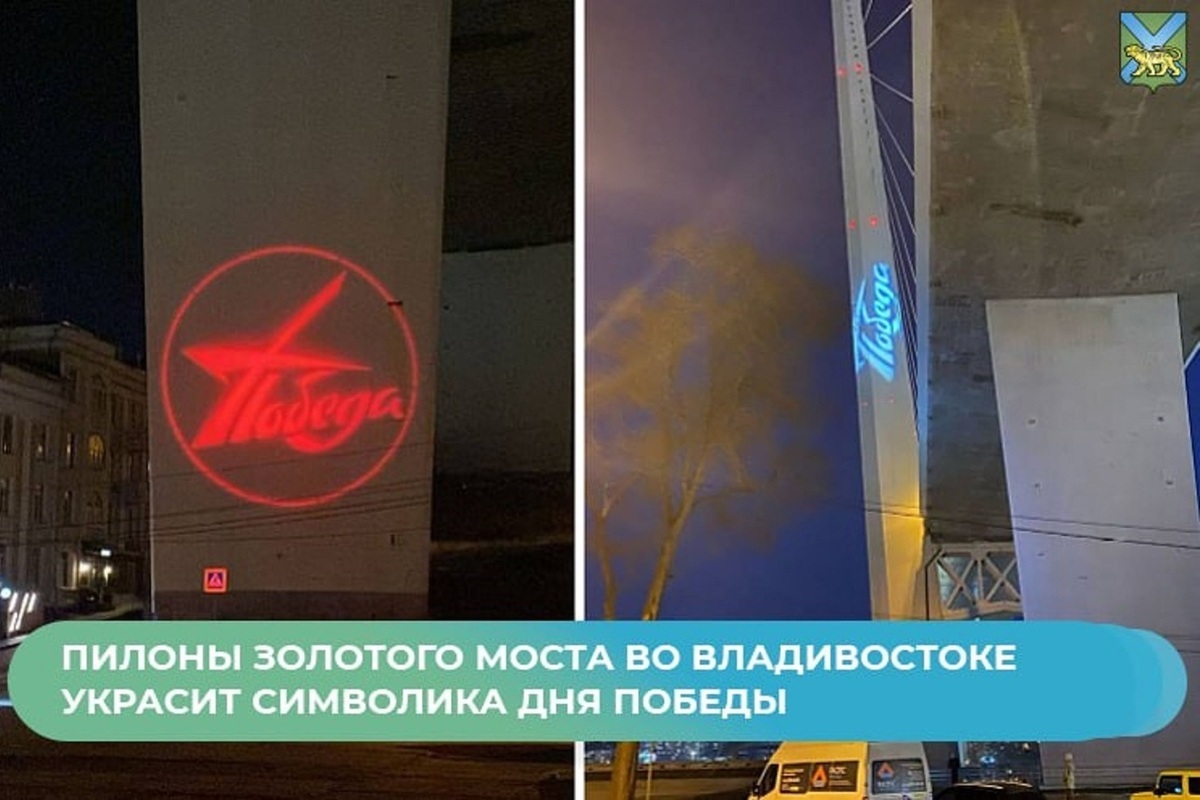 К празднованию Дня Победы Золотой мост во Владивостоке подсветят голографическими изображениями, об этом сообщили в правительстве Приморья. Световые инсталляции на опорах моста будут демонстрироваться с 21:00 до полуночи, начиная со 2 и заканчивая 9 мая.