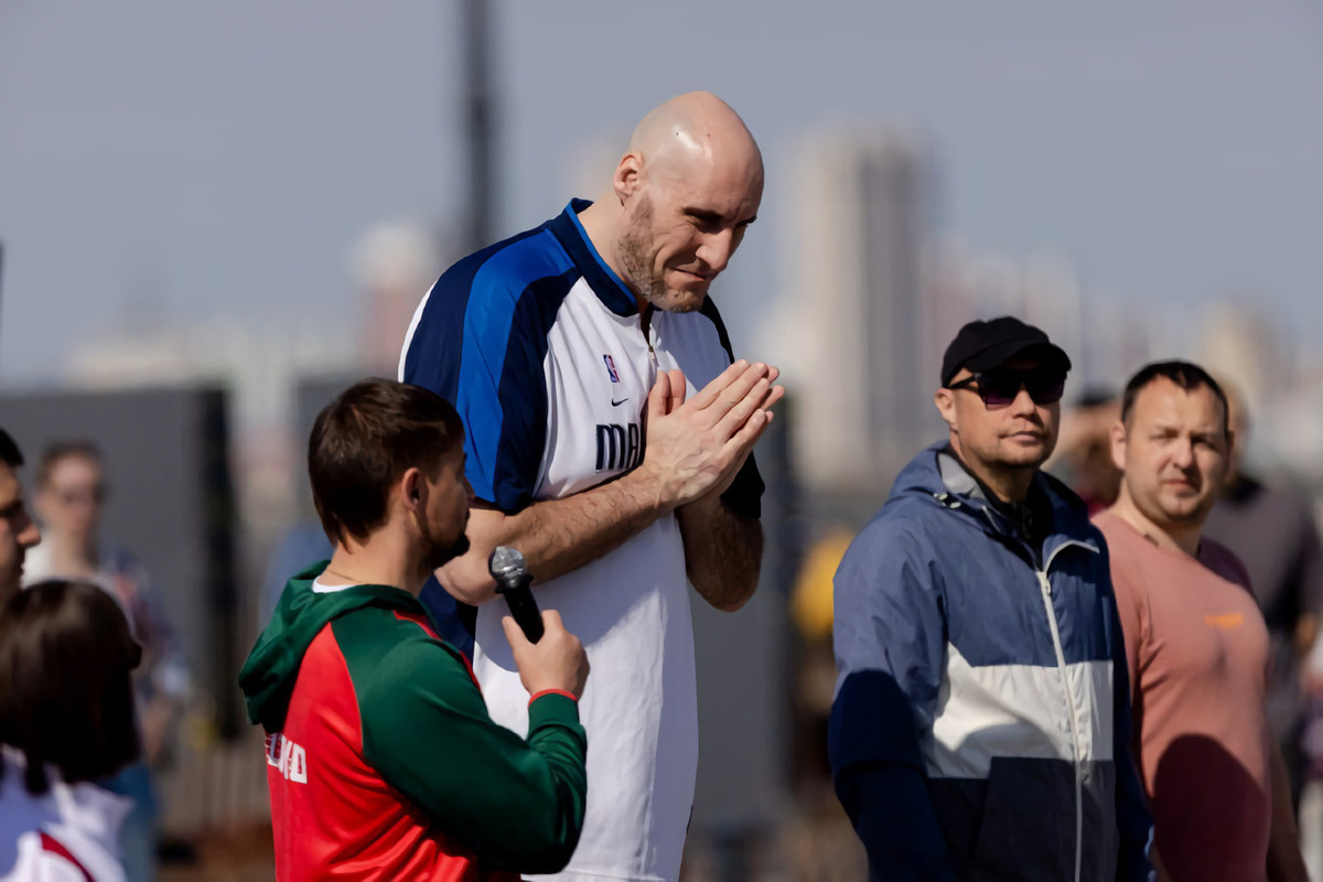 В честь «АмурЭкспоФорума» самый высокой человек и баскетболист России Павел Подкользин встретился с жителями Амурской области и провел для них массовую зарядку. Еще в 2017 году спортсмен был занесен в Книгу рекордов с ростом 2,26 метров, сообщает пресс-служба министерства по физической культуре и спорту.