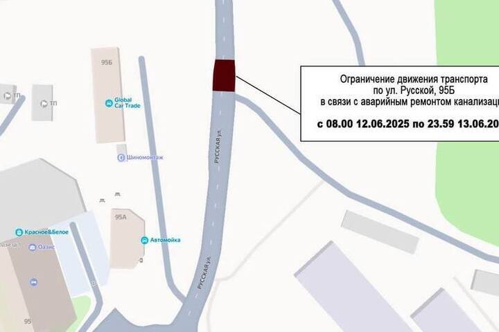 С 08:00 12 июня 2025 года до 23:59 13 июня на улице Русской, 95Б будет введено временное ограничение движения транспорта. Об этомсообщили в администрации Владивостока.