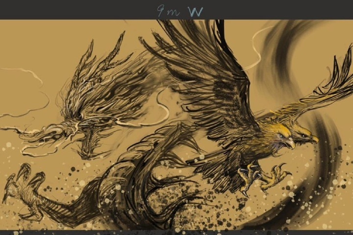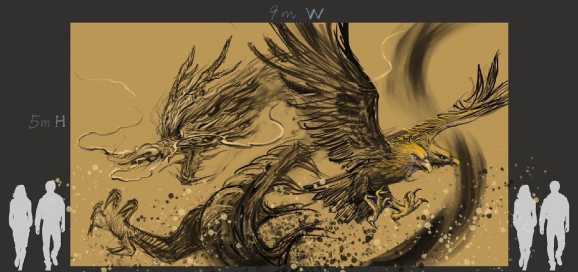 Как пояснил художник на пресс-конференции, орел и дракон изображены спина к спине, что символизирует «уважение и взаимное доверие между нашими странами».