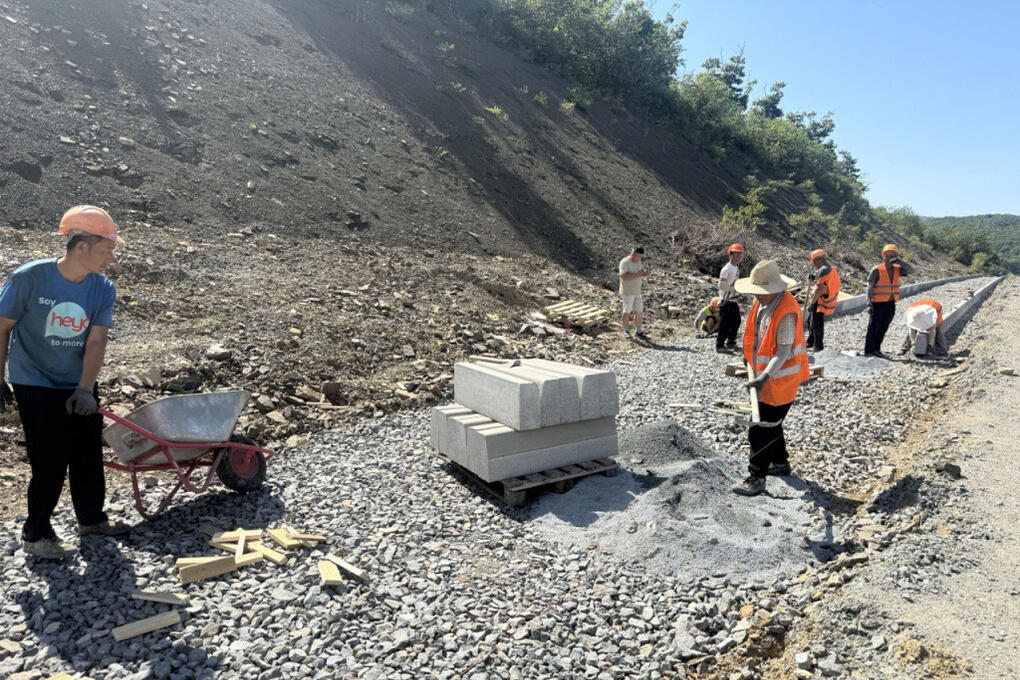 Подрядчик ООО "ВладСтрой" завершает подготовительные работы: установку бортовых камней и отсыпку щебня, после чего приступит к заливке бетонного основания.