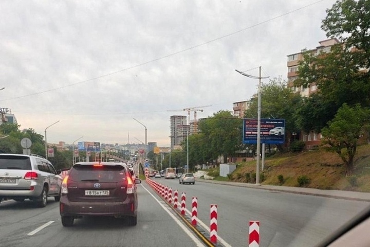 Во Владивостоке на Второреченском мосту установили делиниаторы для безопасного движения
