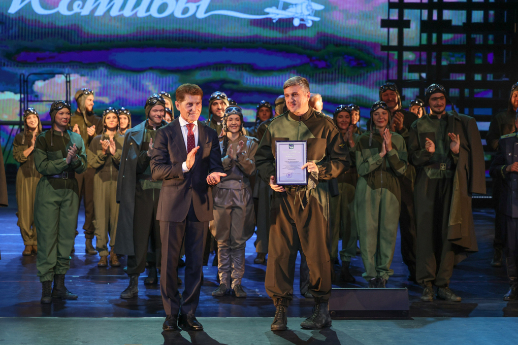 Торжественную речь глава продолжил награждением лучших членов труппы. Медаль «За особый вклад в развитие Приморского края» 1-й степени получил худрук краевого театра имени Горького Ефим Звеняцкий, знак «Почетный гражданин Приморского края» – заслуженный артист России Александр Запорожец. А «Почетными работниками культуры Приморского края» стали Михаил Марченко, Денис Неделько и Яна Мялк.