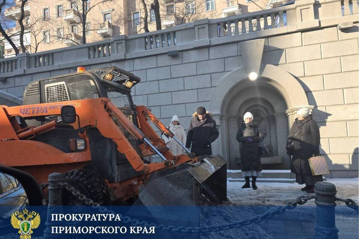 Прокуратура Приморского края усилила контроль за уборкой дорог и тротуаров после снегопада. В адрес муниципальных глав, управляющих и подрядных организаций уже внесено более 60 представлений, возбуждено свыше 30 административных дел и объявлено 26 предостережений, сообщили в ведомстве.