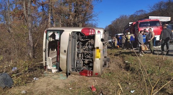 Сегодня в Хасанском районе Приморья туристический автобус, ехавший из Китая в Уссурийск, потерял управление и слетел с дороги в кювет. По неуточненным данным, два человека погибли, 13 человек травмированы, четверо находятся в тяжелом состоянии.